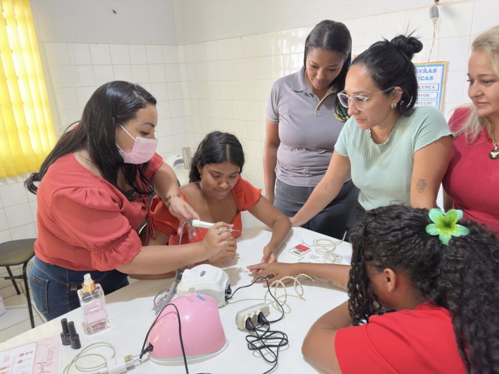 Durante o curso, as participantes aprenderam técnicas de alongamento e cuidados com as unhas, adquirindo conhecimentos que podem se transformar em oportunidades de trabalho e geração de renda.