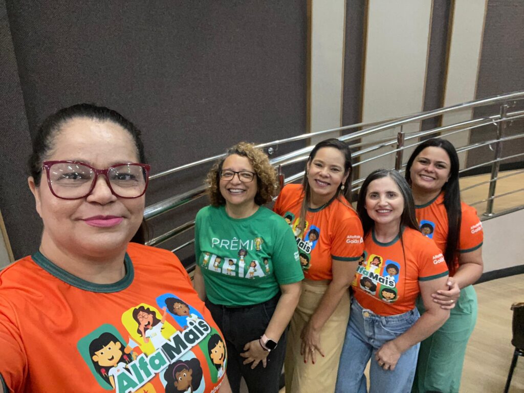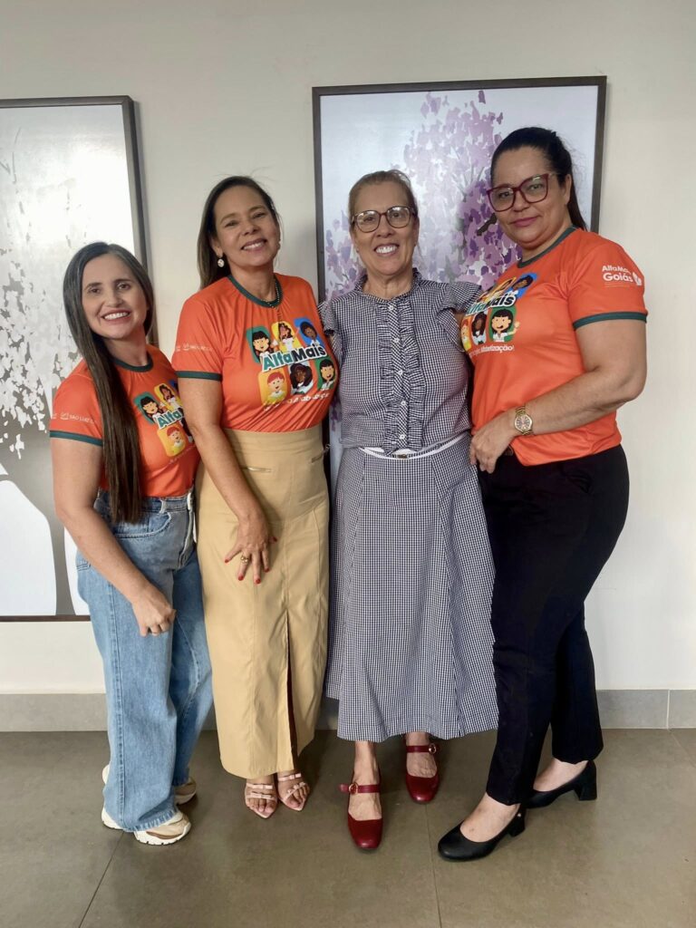A secretária de Educação e também formadora de gestão, Cléia Felix, a articuladora municipal Maria da Penha, a formadora da educação infantil Jeniffer e a formadora da alfabetização Verônica participaram da Formação – Módulo IV do Programa Alfa Mais, realizada no dia 08 de outubro, na SEDUC, em Goiânia.