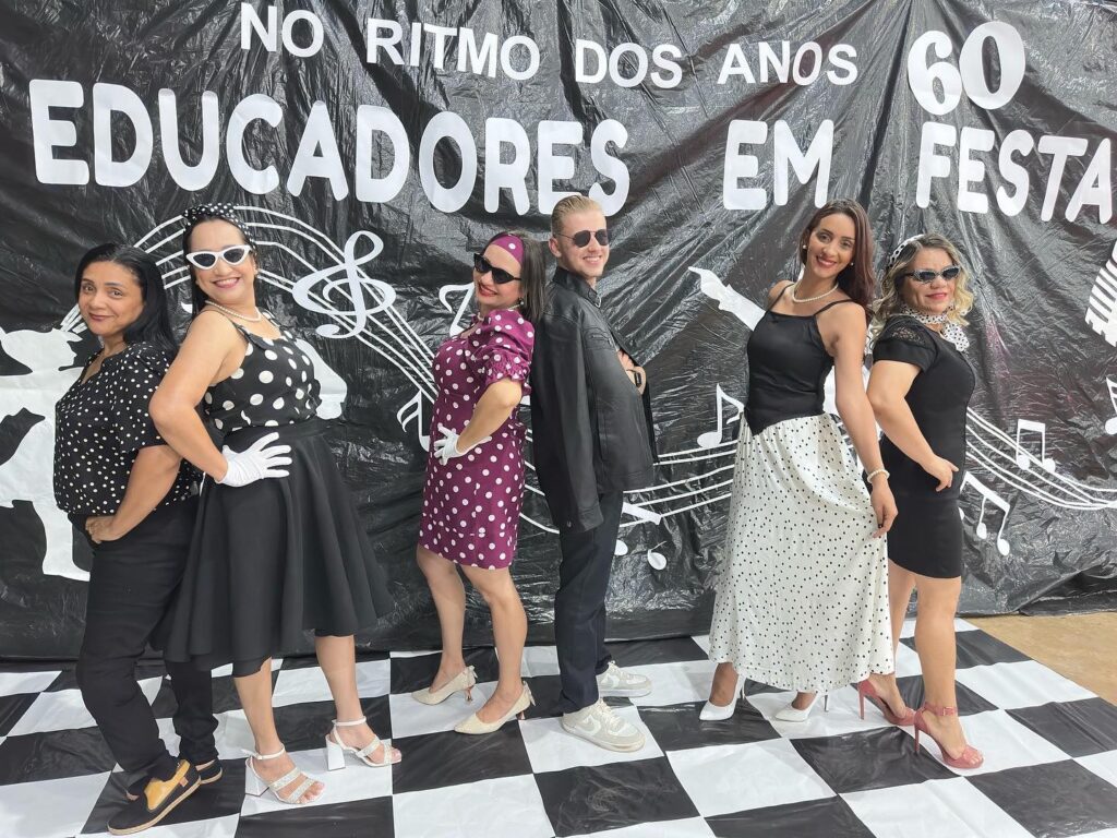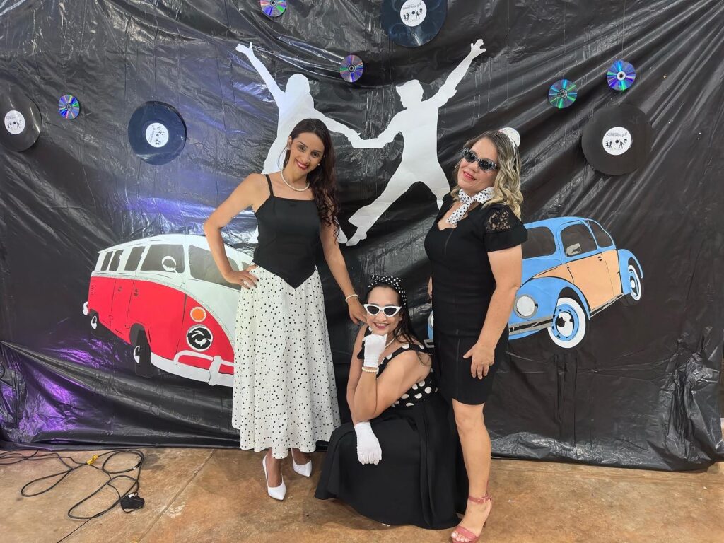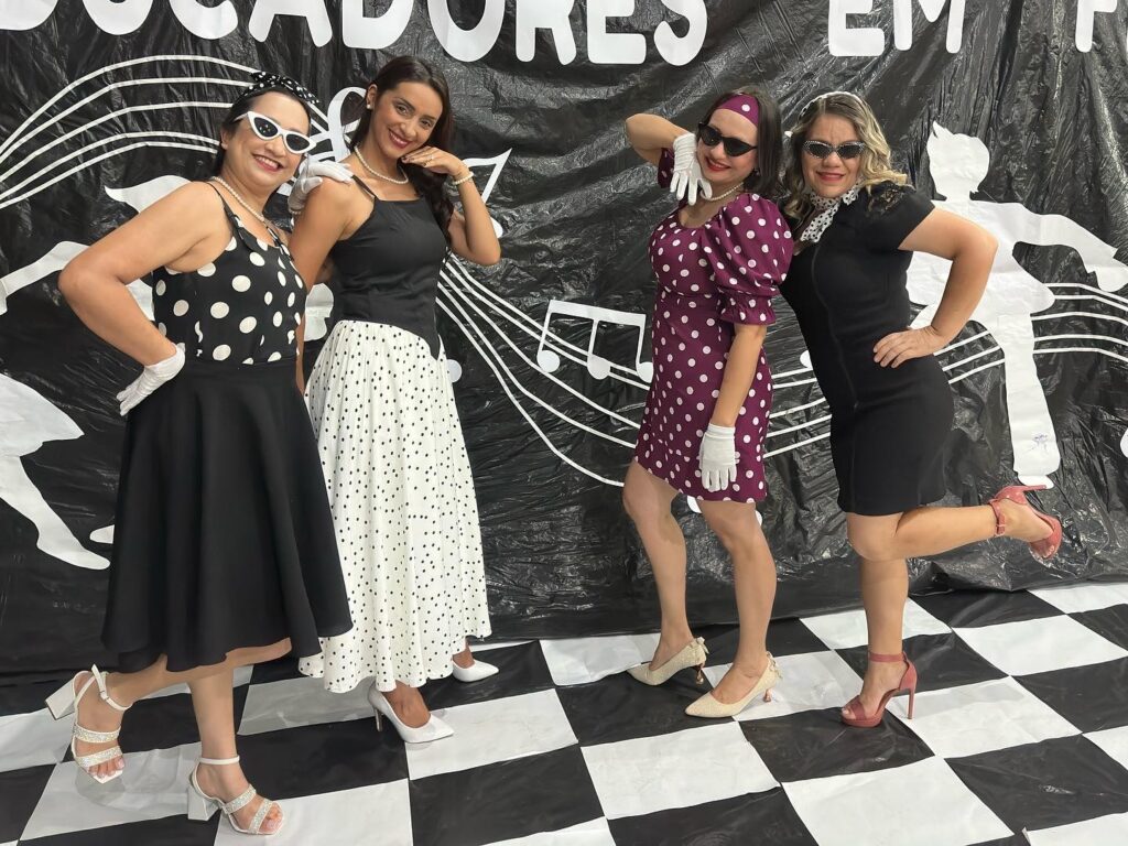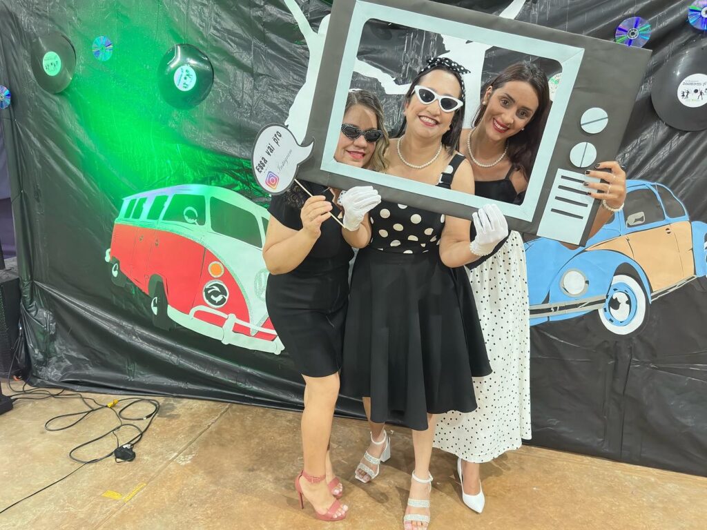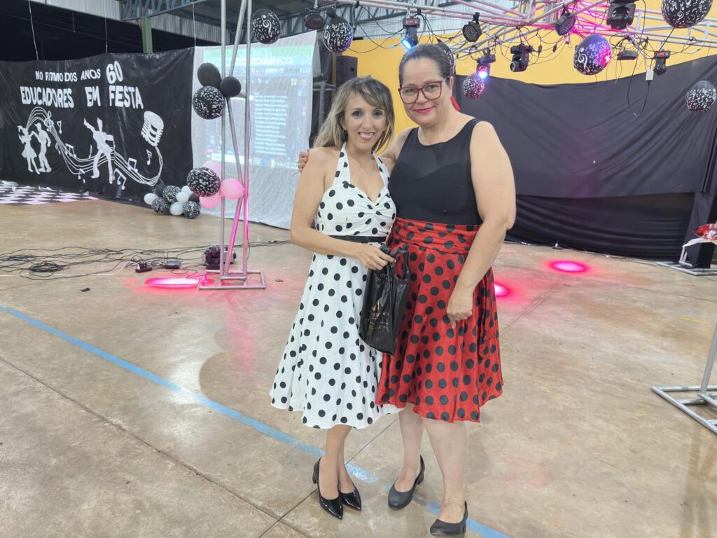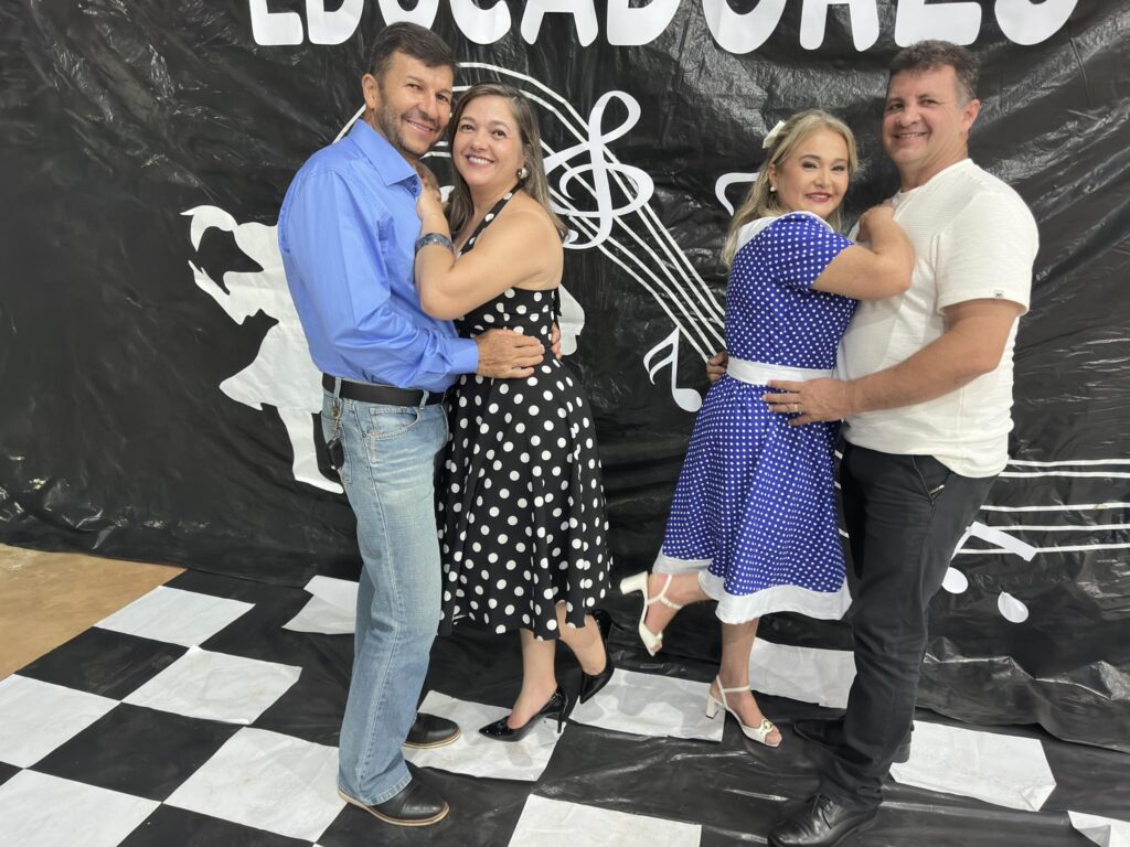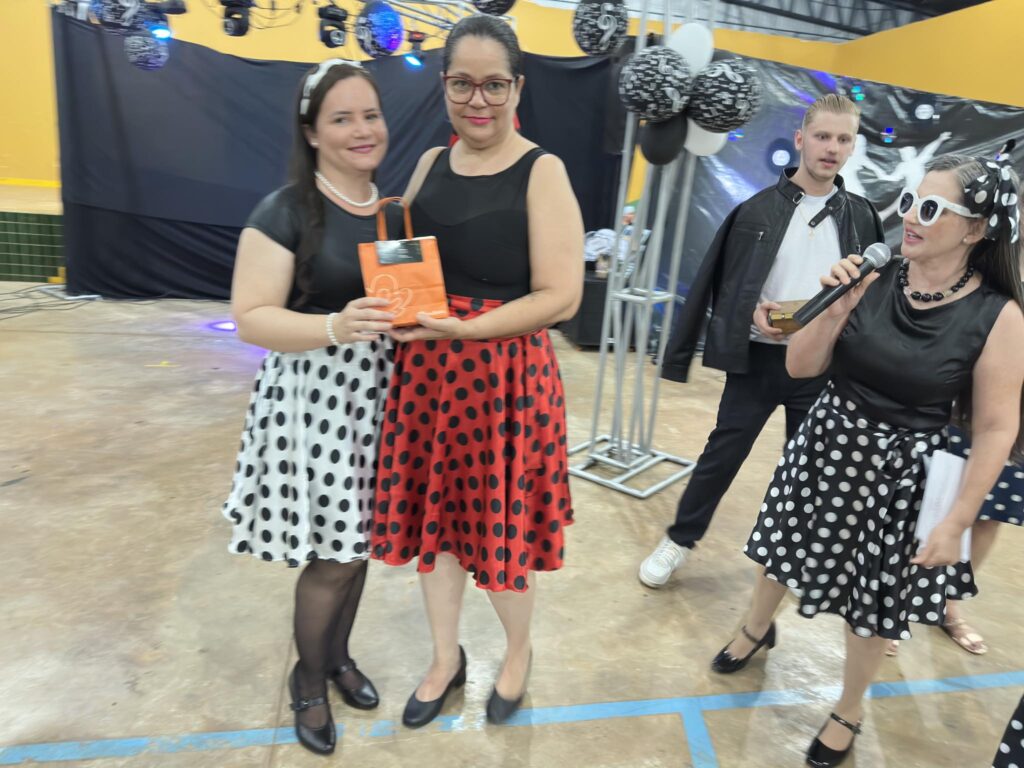 Ontem foi realizado um jantar especial temático Anos 60 para os servidores da Educação! A festa foi marcada por muita música, dança , diversão, um delicioso jantar 🍽️ e lembrancinhas preparadas com carinho para todos!