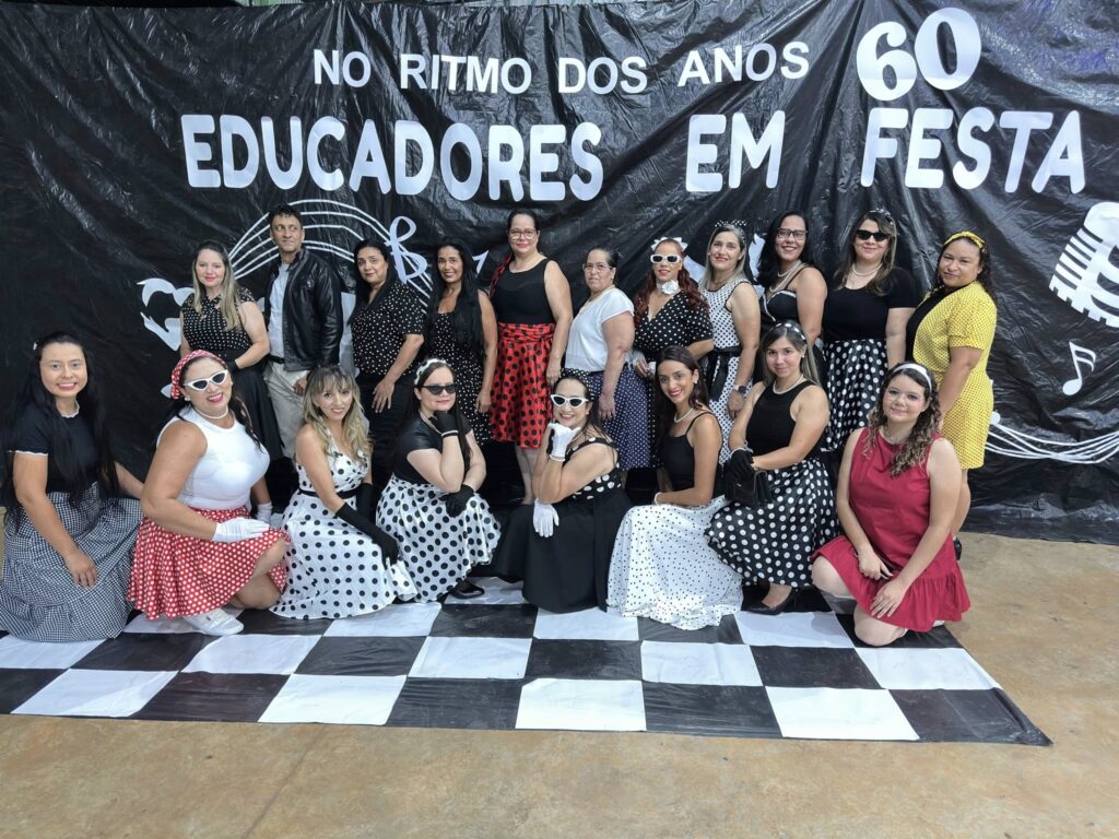 Ontem foi realizado um jantar especial temático Anos 60 para os servidores da Educação! A festa foi marcada por muita música, dança , diversão, um delicioso jantar 🍽️ e lembrancinhas preparadas com carinho para todos!