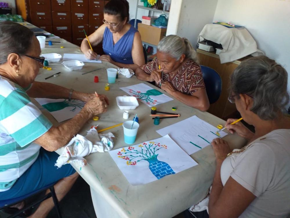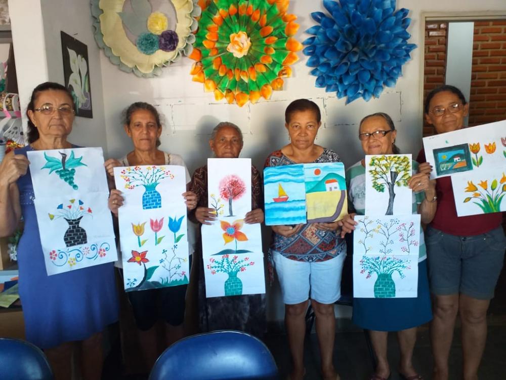 Encontro das Senhoras da Melhor Idade, toda segunda-feira às 8 horas da manhã no SCFV- Serviço de Convivência e Fortalecimento de Vínculos. Muita alegria, descontração, roda de conversa e várias atividades lúdicas, com o acompanhamento carinhoso da Professora Rute Campos. Nesta segunda-feira 26/08, foi dia de pintura, parabéns meninas pelos lindos trabalhos.