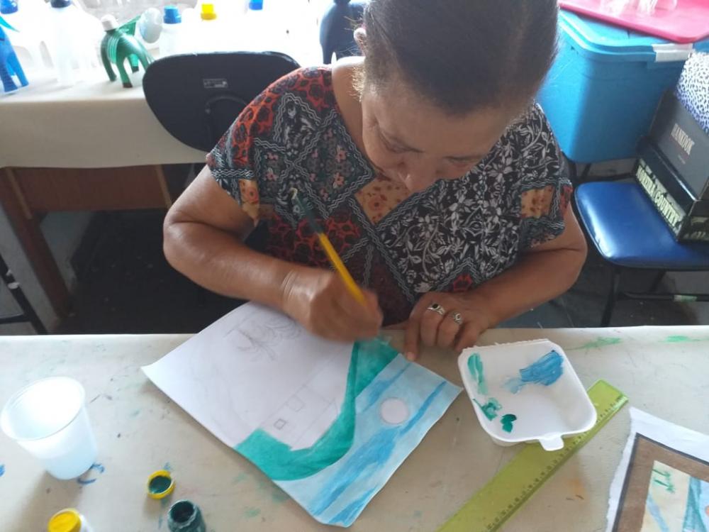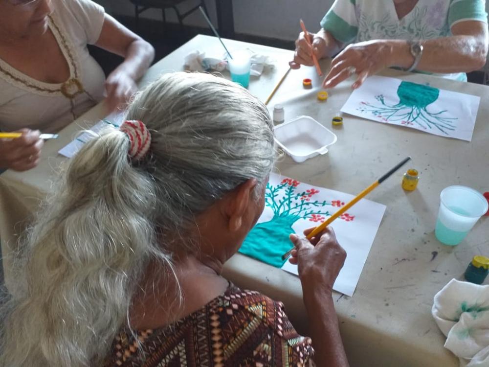 Oficina de artes com a Melhor Idade, dia de pintura em papel